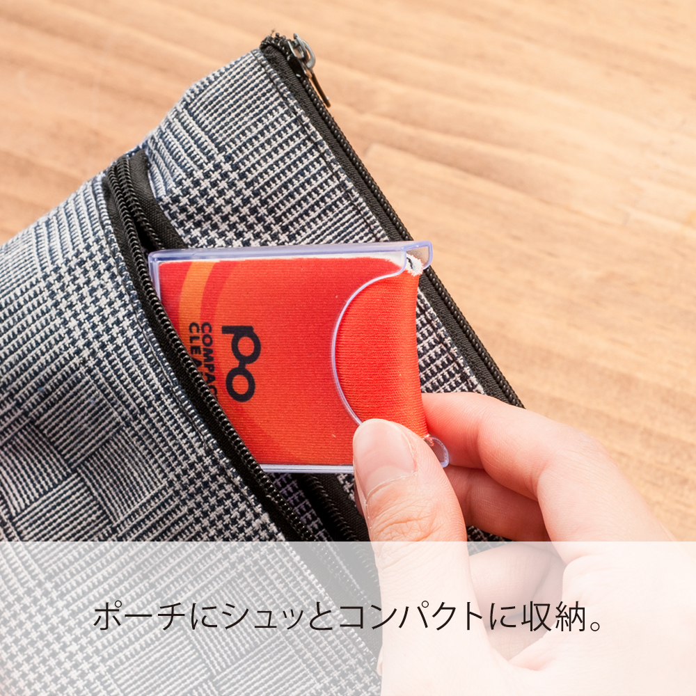 便利グッズとして人気を集める、スポンジ素材の二つ折りクリーナー。ハードケース付きで小振りのバッグやジャケットのポケットにも入れやすく、手軽に持ち歩くことができ、訴求力がさらに高まります。両面超極細繊維の高性能クリーナー。