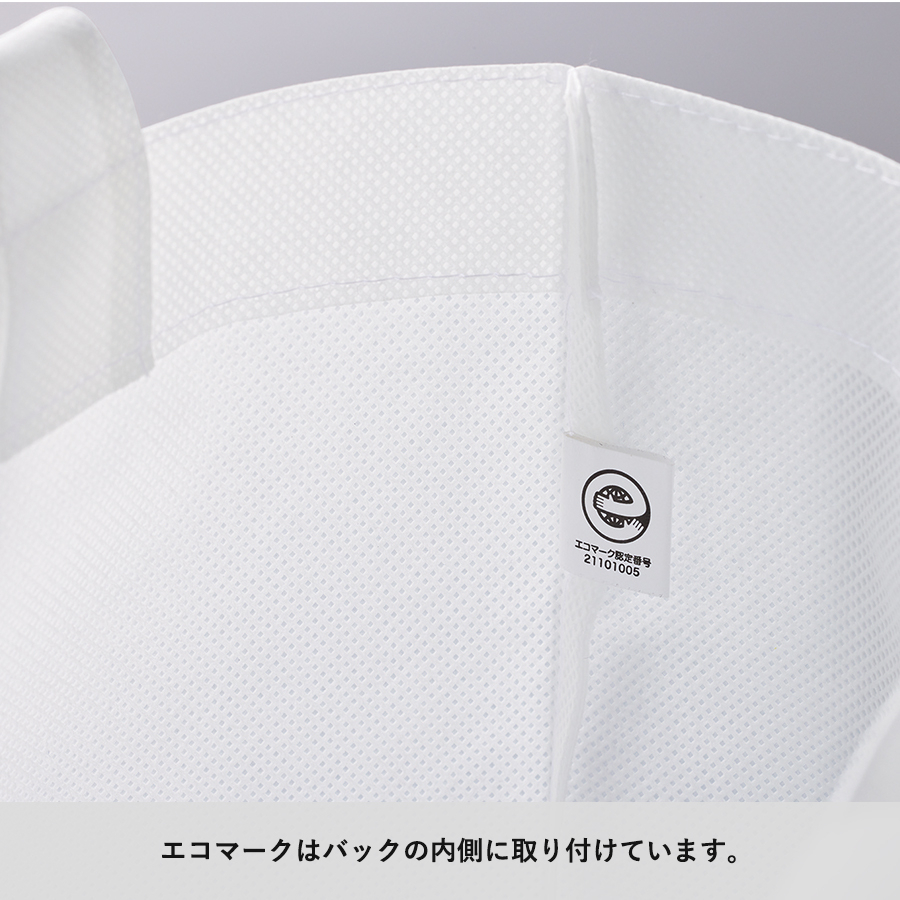 豊富なカラーバリエーションがうれしい!再生不織布を使用したA4サイズトートバッグです。定番の不織布A4スクエアトートと同形状・同サイズとなります。エコマークがついた不織布バッグなのでSDGs関連のイベント・展示会やオープンキャンパスなどで利用する配り物用トートにおすすめの商品です。本体色は可愛らしいサーモンピンクやライトブルーなどを取り入れた7色展開です。単色印刷からフルカラー印刷まで対応しており、企業ロゴやキャラクターなど様々なデザインのグッズをおつくり頂けます。