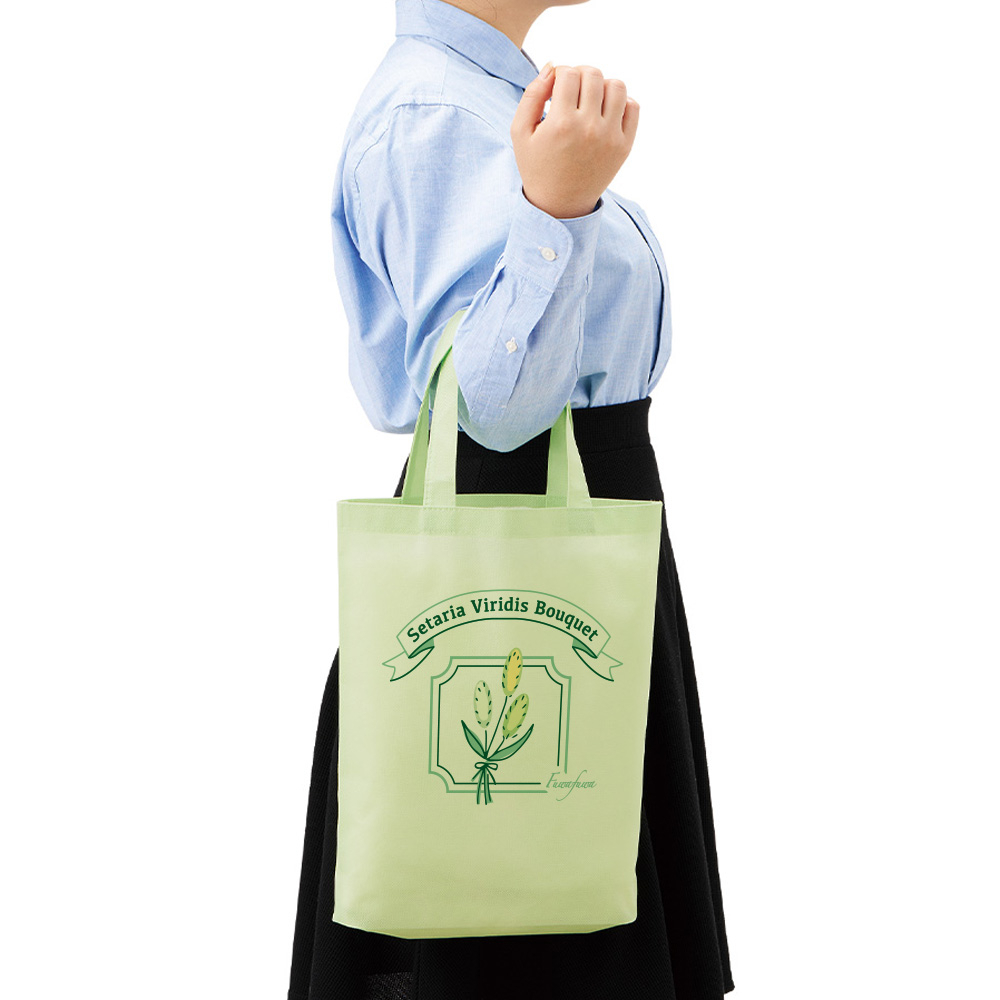 カタログ入れなどにおすすめなサイズ感の手提げタイプで、豊富なカラーラインナップからお好みのカラーをお選びいただけます。低価格かつ便利なサイズ感なので、展示会や説明会、オープンキャンパスなどの大量に使用したいときにもぴったりです。また単色印刷はもちろん、熱転写でフルカラー印刷が可能なため、企業ロゴや校章を印刷すれば販促効果も抜群です。